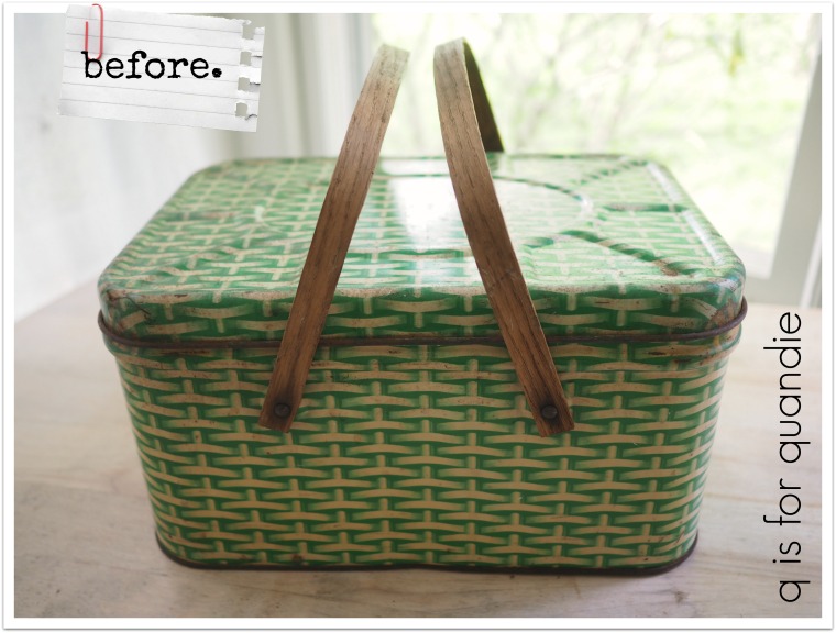 First, I picked up this vintage metal picnic basket at a garage sale last year sometime. I love these old metal baskets.