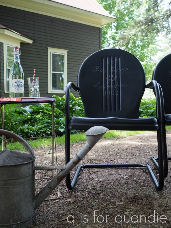 My honest opinion Q…and, seriously I adore you. I am not grooving on the black. The esthetic of the chairs deserves a green or white. And, I don’t feel it needs the stencil. The beauty is the line on the chair back. You lose that detail in the black and the stencil doesn’t help. But, I’m sure I will be outnumbered…I just think it would look cool in a bolder color and reminiscent of these chairs out along the Route 66 motel and pool/picnic area! Happy 4th!!