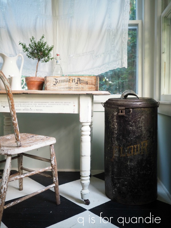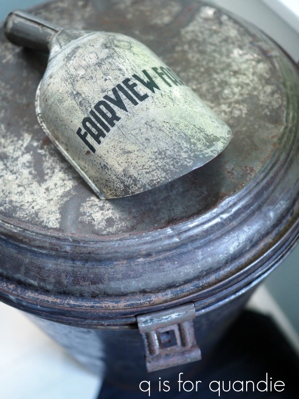 Funny enough, no one even seemed to be noticed the flour tin. And by the way, I didn’t mention that I had to take the trash out of! I think everyone else just saw ‘trash can’ instead of ‘cool antique flour bin’.