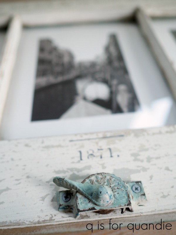 I also added the old window hardware.  This was some old hardware that I picked up at a garage sale once upon a time.