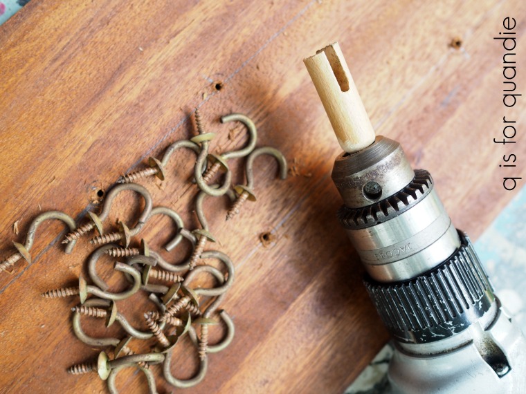 Throw the drill into reverse and it’s easy peasy to remove all of those hooks. Seriously you guys, how clever is that? And now I have a lifetime supply of cup hooks.