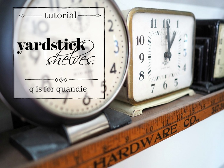 After she left I realized that it had been a while since Ken and I teamed up to make these shelves.  So I dug through my stash out in the carriage house and I found six random yardsticks (I tend to grab them when I see them at garage sales).