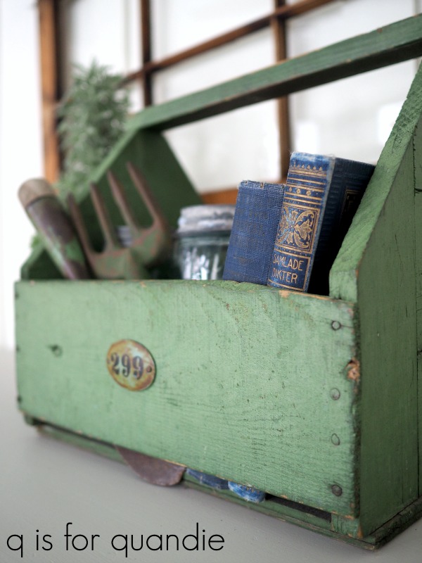 But I also wanted to draw out the green, so I also used this old green garden tote that I usually keep in my pantry.