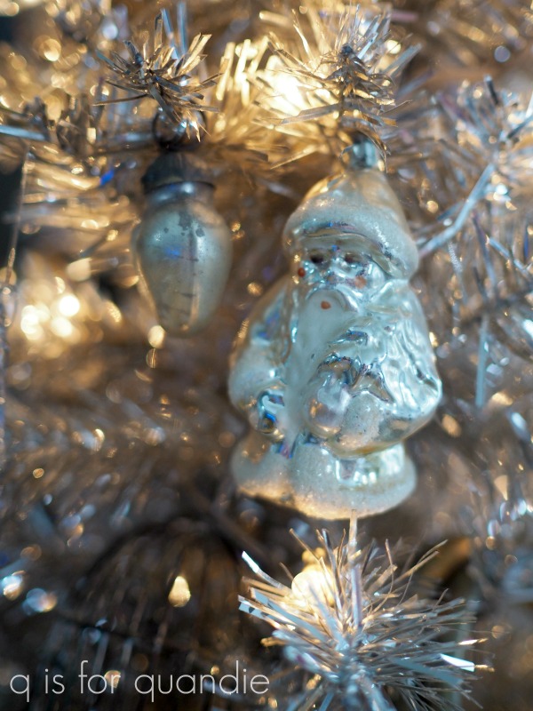 Quite a few of my vintage ornaments made it onto the tree as long as they were silver or gold.