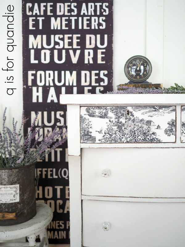 The dresser looks gorgeous. That transfer is perfect for the dresser. It really is Q is for Quandie style.