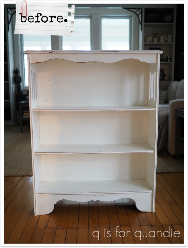 It was pretty in the existing white, but the paint that was used was a little too shiny for my taste. Also, I snapped the ‘before’ photo above after I sanded it to prep it for painting. So it wasn’t really distressed when I got it either.