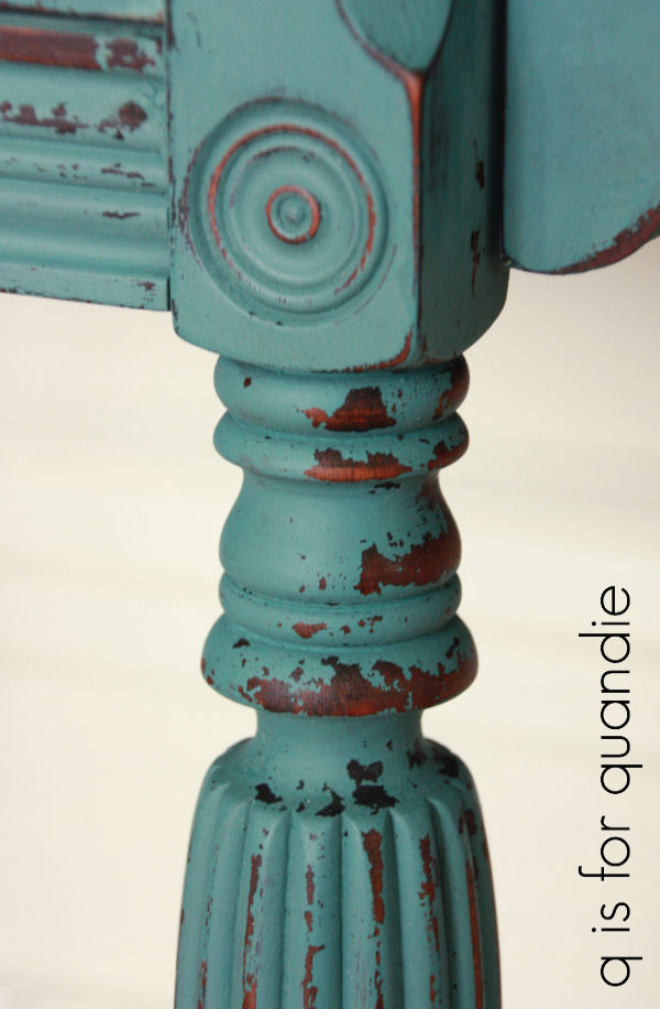 But the chippy finish of milk paint was perfect on this piece. Just check out those chippy legs!