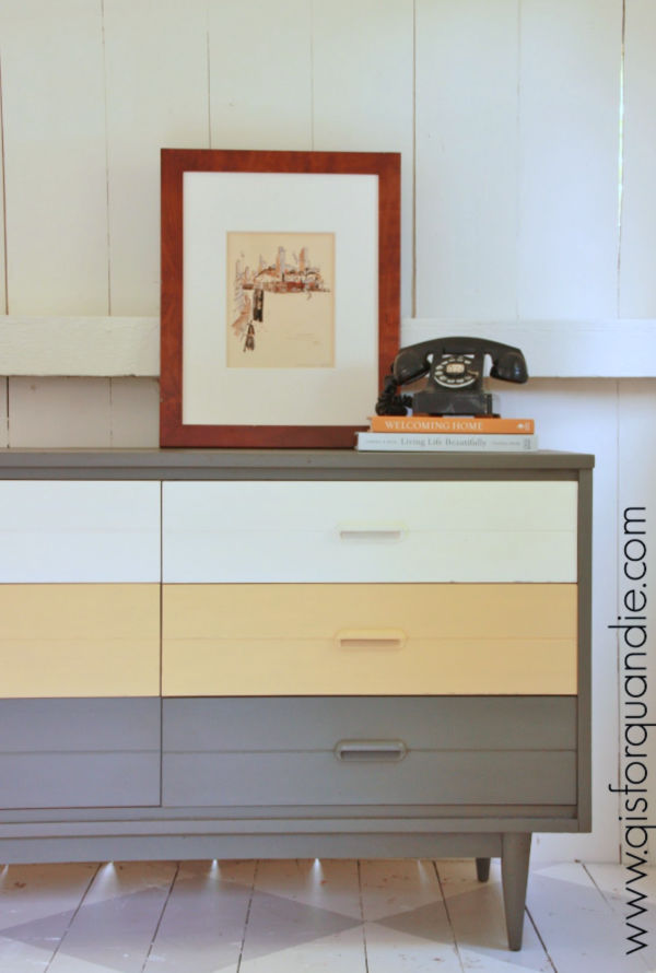 I did some color blocking on this next mid-mod piece in grey, yellow and white.