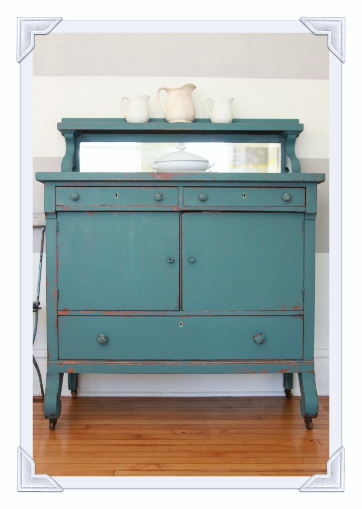 That one was painted in Homestead House milk paint in a color called Bedford.
