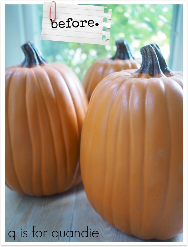 But inside, I want to go in a different direction so I decided to paint up a few pumpkins to match my decorating style a bit more. I actually purchased these faux pumpkins last year after the fall season when they were 75% off. I was thinking ahead for once!