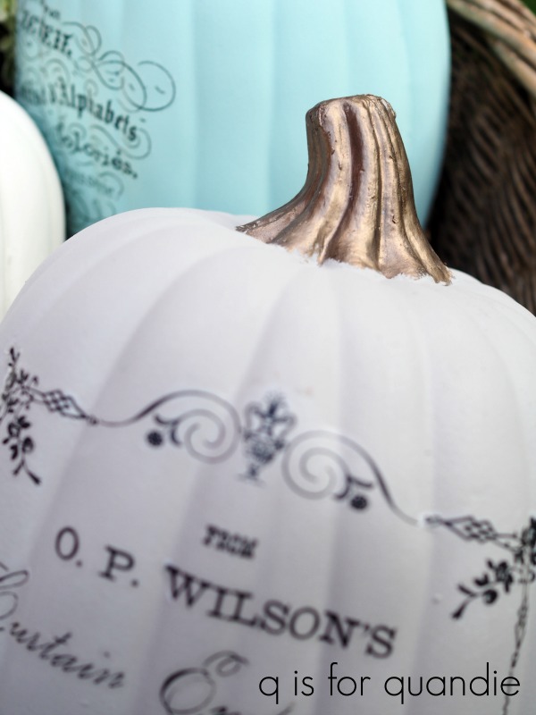 Your new painted pumpkins are the best! While I have never minded the traditional pumpkin look I find myself very happy looking at your updated pumpkins. I’m going to have to hit the craft stores after the holidays and stock up. Or look for some at the thrift store.