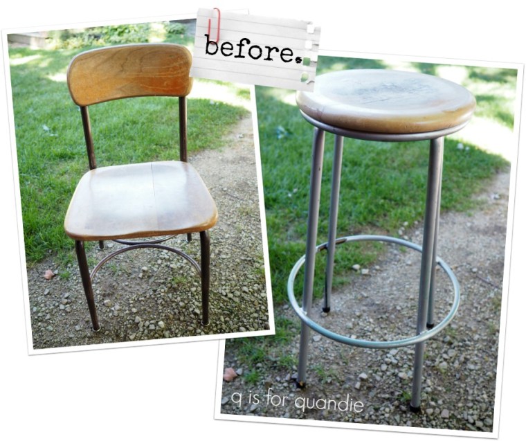 These two pieces have a few things in common.  They both have blonde colored wooden seats.  They both have unattractively colored metal legs.  And they were both in pretty rough shape.