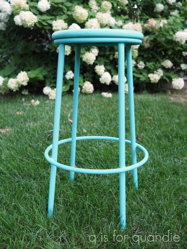I started with the stool first.  I sanded the wooden seat and then cleaned everything with some TSP substitute.  It looked like this stool may have been in someone’s workshop, and I just wasn’t sure if there were any oily residues on it that might resist paint.  I like to use a grease cutting cleaner in these cases rather than my normal plain ol’ water.