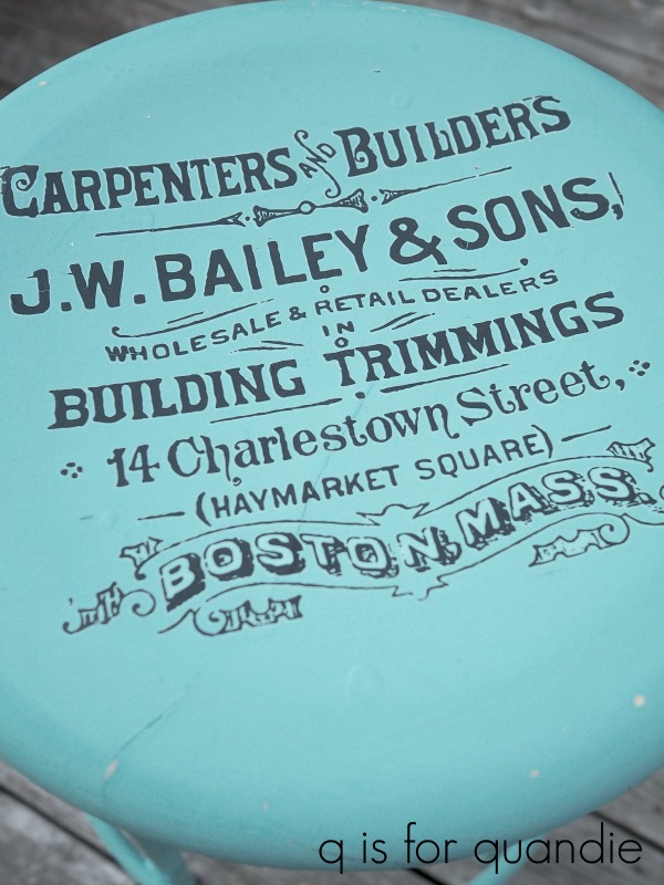 By the way, in case you are keeping track, so far I have used this one transfer on 7 pieces (the medicine cabinet, the folding chair, a painted pumpkin, a wooden box, a mirrored box, a recipe box, and now this stool).  The funny thing is that I mishandled the transfer when I first took it out of the tube and ended up ruining a section at the top (it stuck to itself), so I could have gotten even a couple more projects out of it if I hadn’t done that.  I still have a couple of small pieces left too.