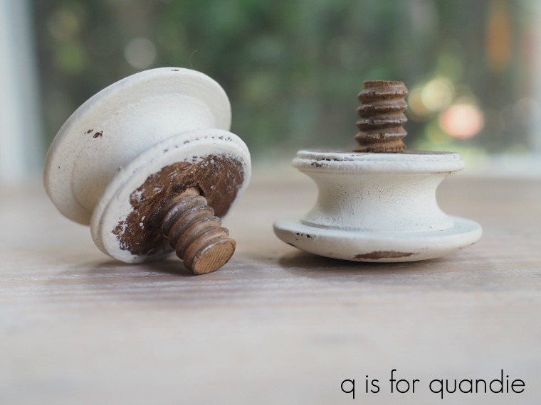 I’ve only seen this style of knob on a handful of pieces and I felt like they were a feature that I didn’t want to remove.  Especially the one on the cupboard door because it has a little latch on the back that keeps the door shut when you turn the knob.