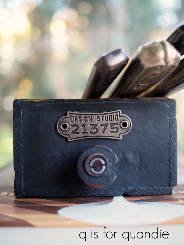 so after cleaning the box, I decided to just spruce up the end that had already been painted black with a fresh coat of Dixie Belle’s Midnight Sky.
