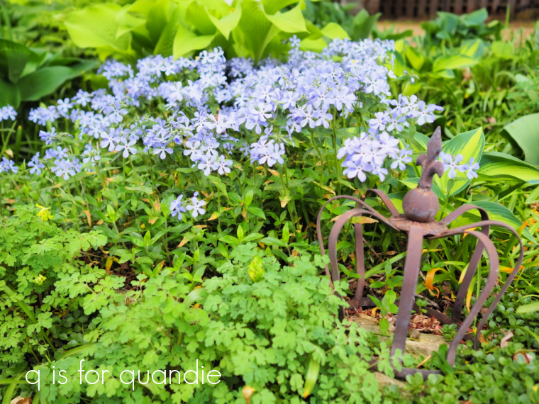 The periwinkle blue flower looks like vinca minor. I love how dainty it looks. It’s a great ground cover. Never heard of foam flower very pretty. Love the colors of bleeding heart and oh my gosh those lilacs. They do not grow in the south. Such gorgeous color. And I am a huge “Garden Answer” fan. She’s the Quandie of gardening. Thanks for sharing about the concrete adhesive. I had no idea there was such a product. The fairy garden is charming.