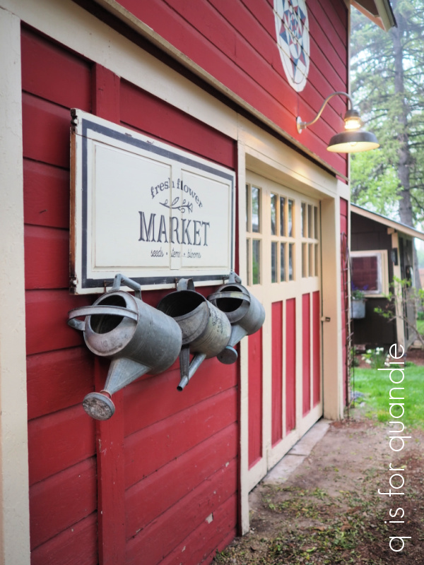 p.s. although I loved the cabinet-I did not like it in that spot-plus I’d paint it and find a spot inside or on your porch. The carriage house looks great with the sign and watering cans!