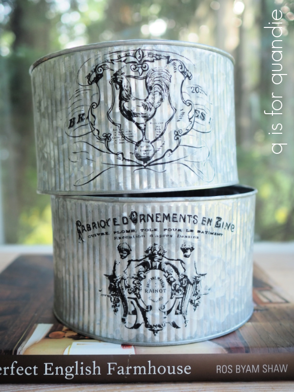 The galvanized containers have already gotten some transfers added to them.