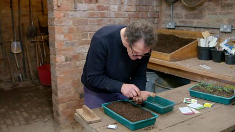 See it there to his right?  Basically it’s just a flat bit of wood with a handle that you use to tamp down the soil after you put it into your seed tray.