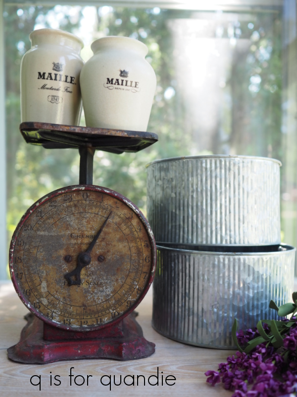The scale isn’t in the greatest shape, but I remembered my friend Jackie’s scale in her garden and thought this one could be used in a similar way …