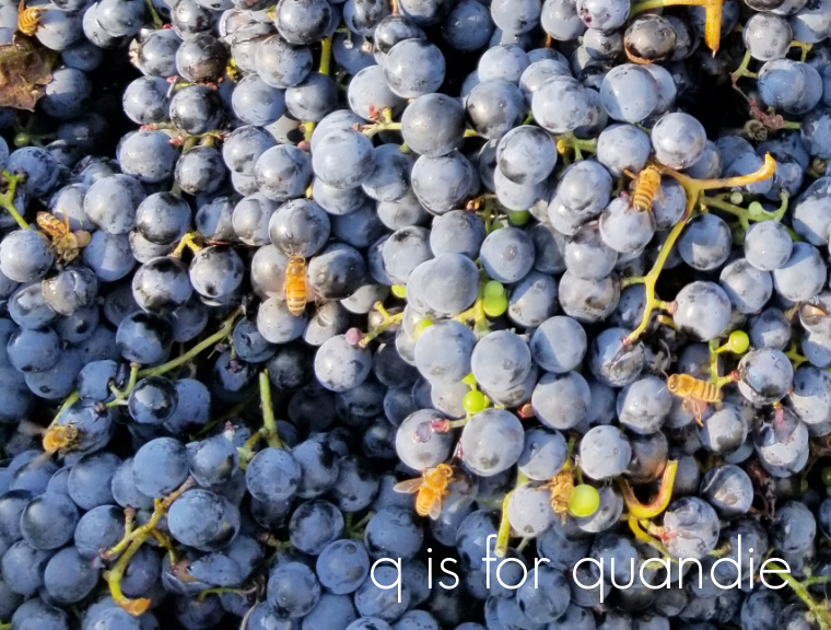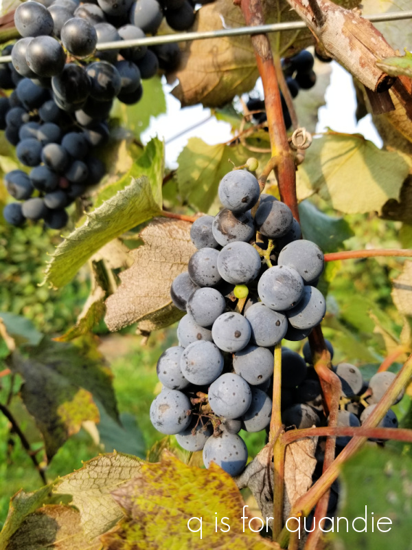 A while back my … gosh … I don’t really know what to call her … my virtual work colleague?  I was initially thinking my ‘online friend’ but that seems to have the wrong connotation 😉 Basically, Deb is the contractual ambulance biller assigned to our account at my day job.  We have one of those work relationships that are conducted almost entirely over the phone and via email.  I’m pretty sure I’d literally only met her in person twice (or was it even only once?), but I speak with her on the phone several times a week and email her almost daily.  Recently she purchased the Farm Fresh Shelf from me and when she and her husband came to pick it up we got to chatting, and they invited us to help with their grape picking this year.
