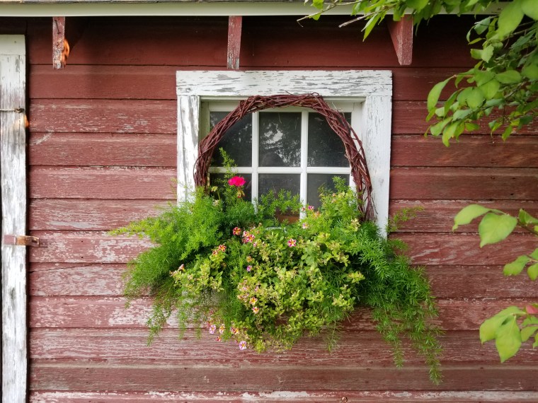 I don’t actually know what’s inside.  It’s probably used for something far more practical.  But it sure is cute, and I love the arrangements in the window boxes.