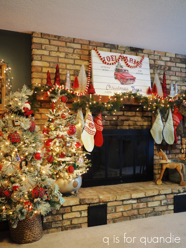 While Amy used a lot of green and gold in her Christmas décor upstairs, the downstairs is devoted to red and white.