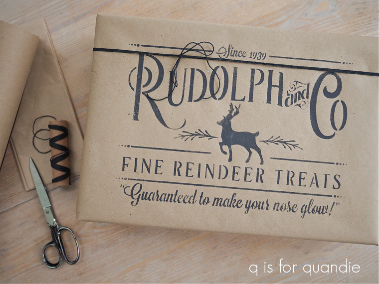 Here are a couple of q tips on stenciling Christmas packages.