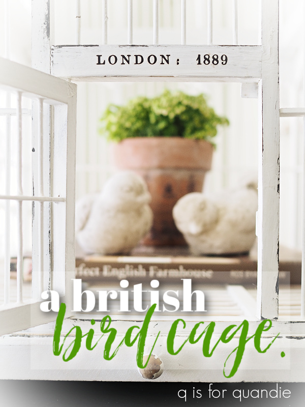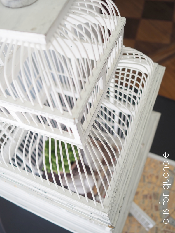 So, if any of you locals are interested, yes, this slightly British bird cage is for sale ($48).  Send me a quick email at qisforquandie@gmail.com or leave a comment on this post if you are interested and we can set something up for when I return from my mom’s house.  And if no one calls dibs by the time I get back, I’ll be taking this one in to Reclaiming Beautiful.