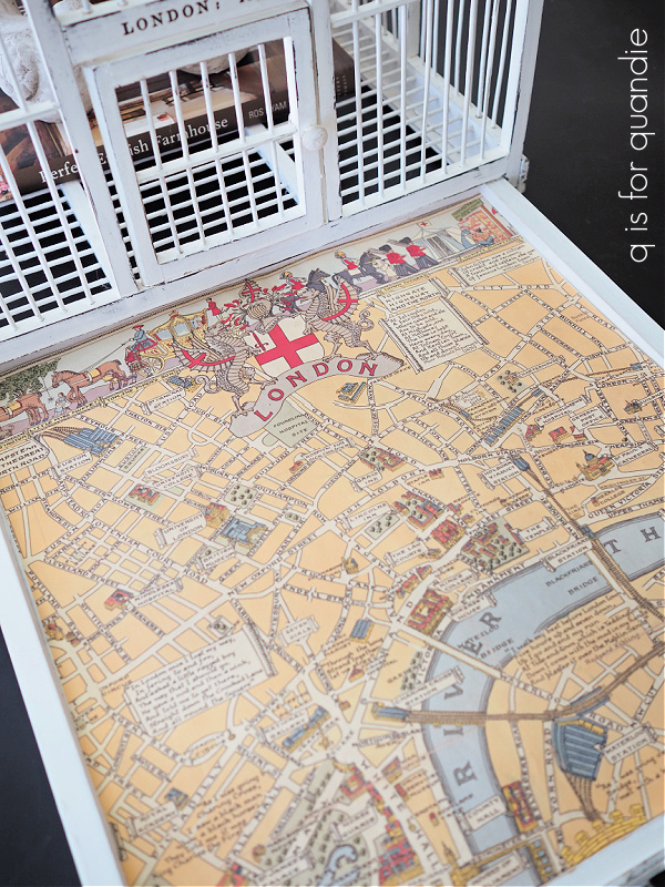 I lined the pull out tray with some Cavallini London map paper.