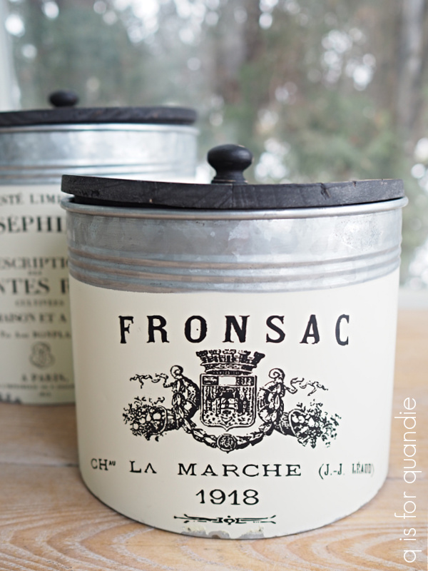 Originally I thought I would leave the lids ‘as is’ because I liked the sort of faded driftwood-ish appearance of them, but once the transfers were in place I felt like black was a better option.