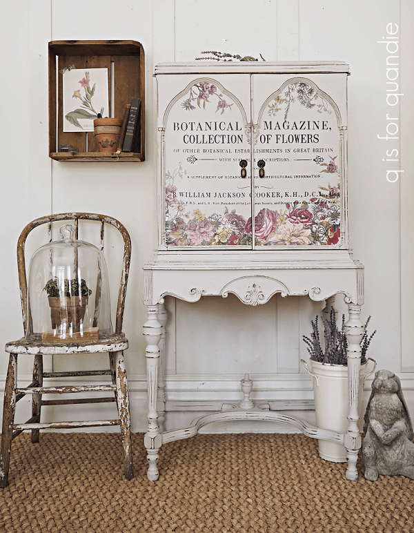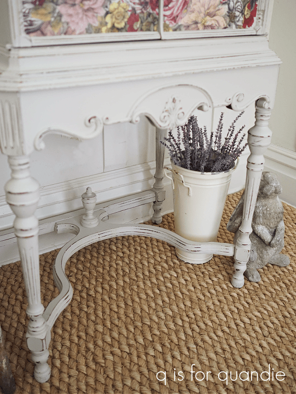 9. Oh Miss Quandie you did such a beautiful job on this! The color choices, the execution! I always wonder how you manage to get those transfers on so straight……I know that once you lay them down they are STUCK, but yours are never slanted or too much up or down! You just have so much skill…….I have been thrifting for a piece like this, or a side board with this kind of legs, for YEARS! Your seller must be moving to Los Angeles because it seems like no one moves here with these kinds of beautiful possessions!