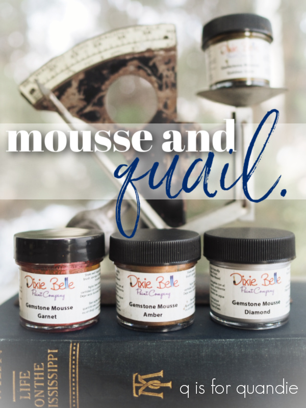 I have to admit, I haven’t quite figured this product out yet. It’s thicker than a metallic paint, but not as thick as a metallic wax. You can rub it on with your finger, or apply it with a brush. It’s water based, so you can reactivate the mousse with water. It doesn’t require a top coat, although if it’s going to get wet I think I’d be tempted to add one. That being said, a water based topcoat that is brushed on may reactivate the mousse causing it to lift off your surface. Also, my quail felt tacky to the touch for a couple of days after being coated with the mousse. I’m not sure if that’s because my application was too thick or what. According to the instructions, the mousse should cure in 24 hours. For that reason, you may want to use a spray sealer of some kind, even the Dixie Belle Easy Peasy spray wax would work. But after a few days of dry time, my quail feels just fine.