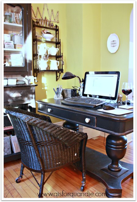 Way, way back I had Ken add casters to the legs on this chair and I used it as my desk chair before I gave the Q Branch a makeover and it still looked like this …