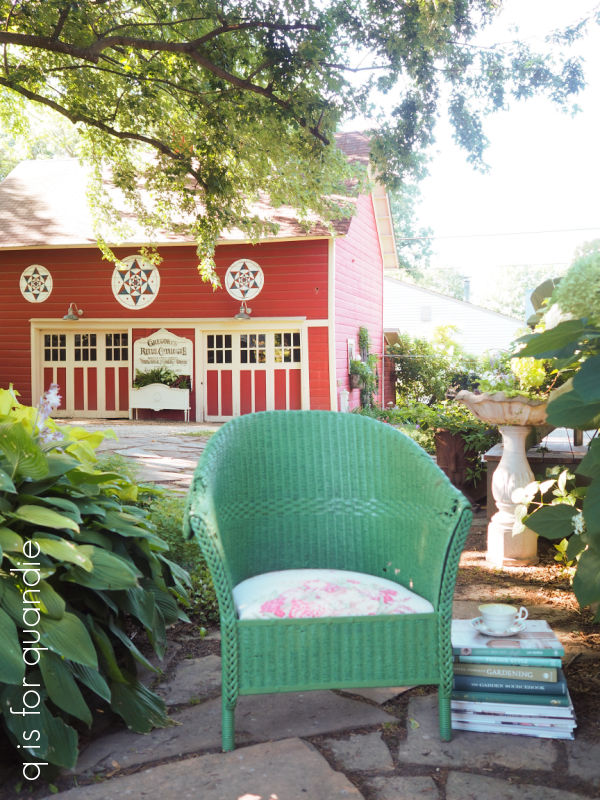 8. It’s Quandie, Miss Quandie, Licensed to…do whatever she wants……..lol! I, for one, would like to request a look at that carriage house attic! I want to see the magic up there! The green chair is pretty and something that you mentioned piqued my interest: you’re waiting for a transfer to arrive for your potting bench. Doesn’t a potting bench get all dirty and messy? Will the transfer be wasted? Or can it really be sealed well enough to withstand scraping pots etc?