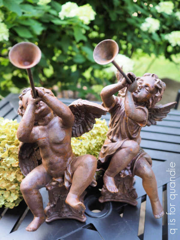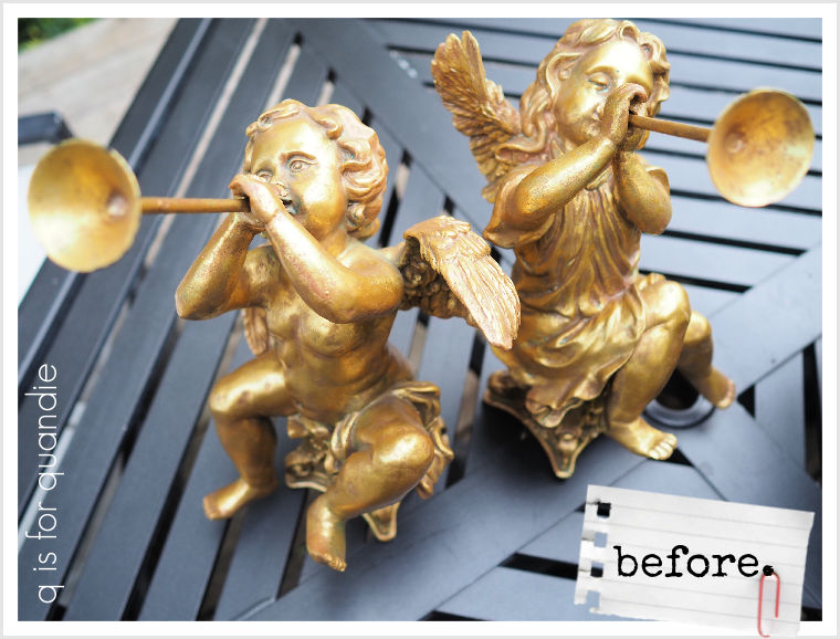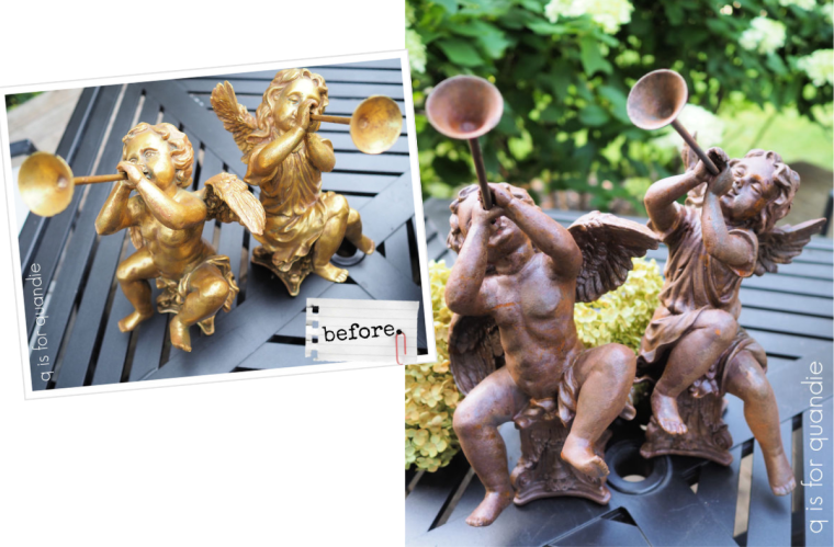 As for the golden cherubs, I think they would be perfect for Christmas décor, but the gold was a little too precious for me.  Now that I’ve made them rusty, they have an earthier feel.