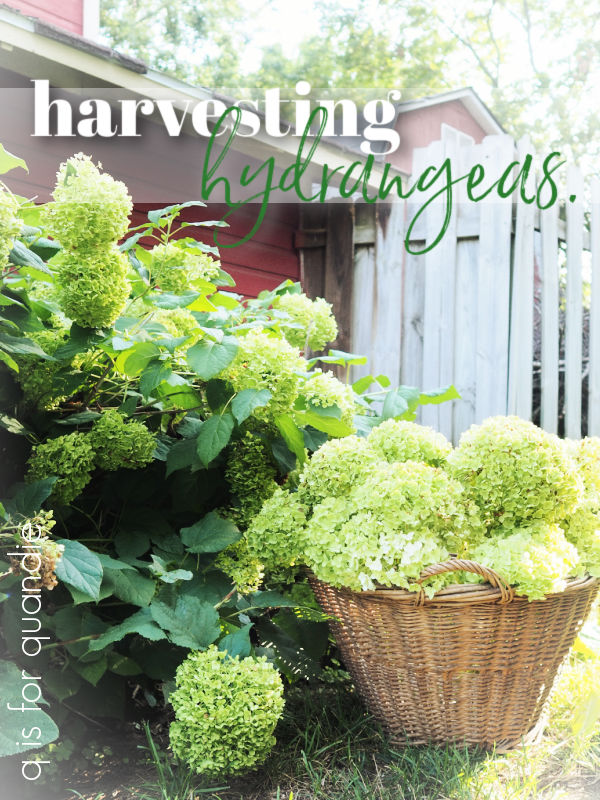 I did a bit of online research and learned that the best time to harvest hydrangeas for drying is when the blooms are past their prime and starting to dry and/or change color on the bush.