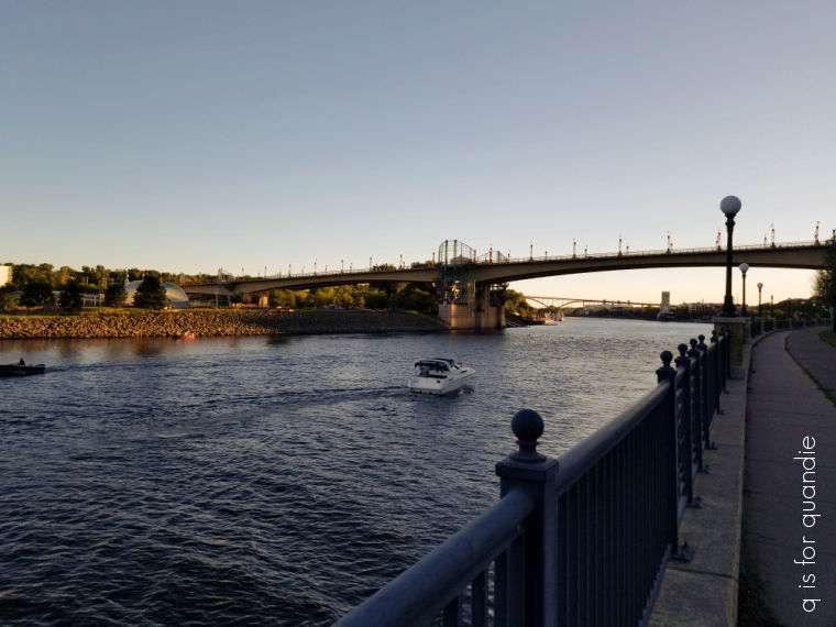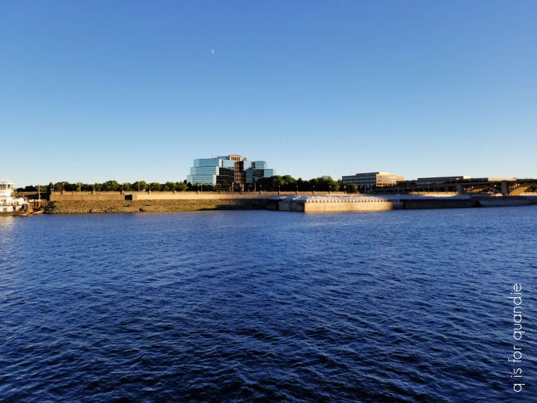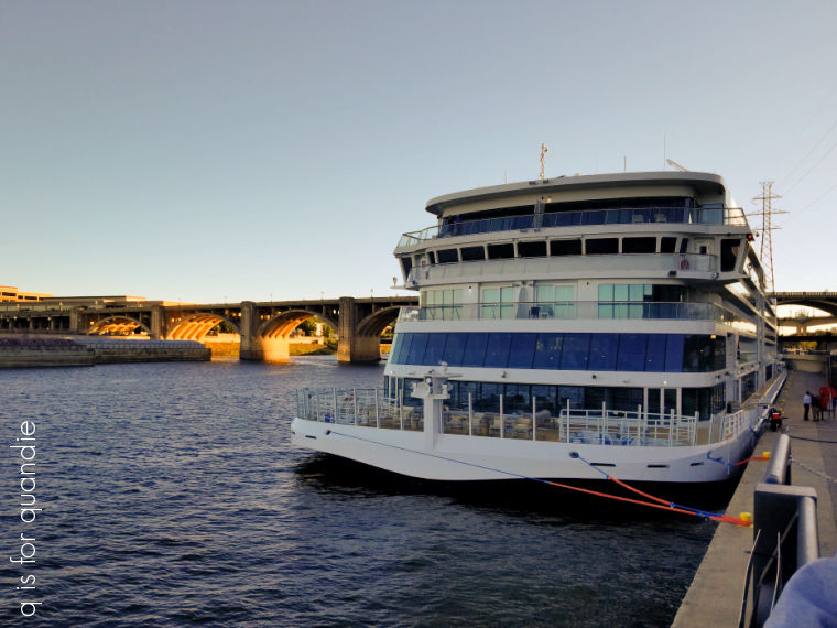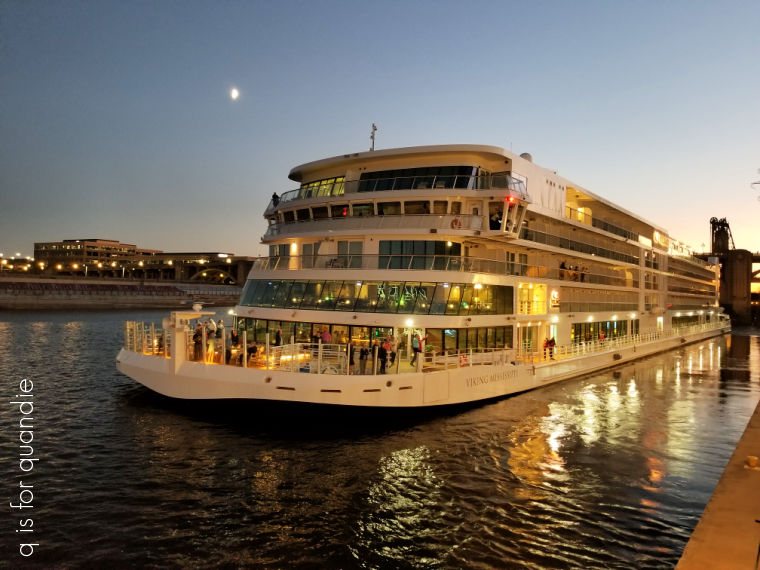Mr. Q, my sister and I were having dinner on Saturday night, about to start a game night, when I remembered reading that the brand new Viking Mississippi ship was in St. Paul about to set sail on its inaugural voyage.  So on a whim we decided to scrap game night and drive into St. Paul to see if we could catch a glimpse of the ship.