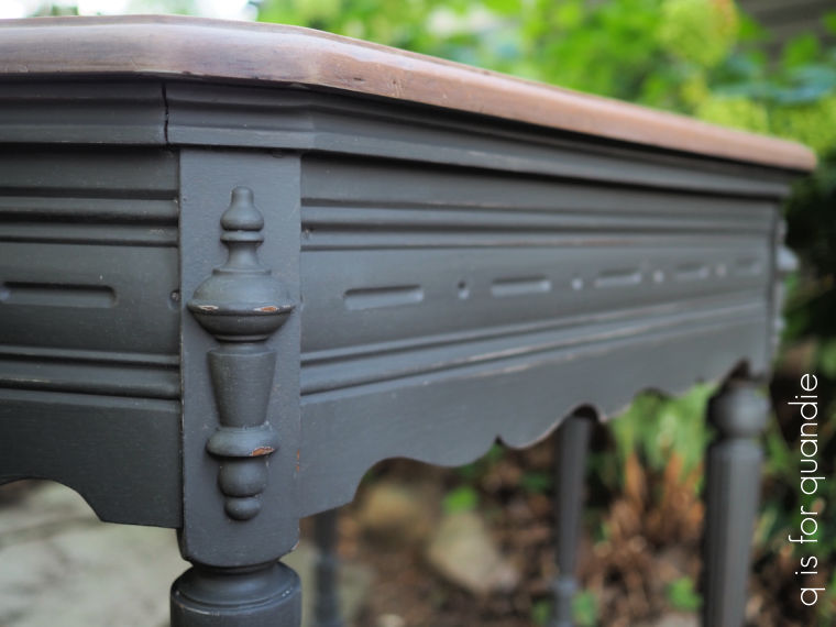 The Dried Sage isn’t really a green … more of a medium gray with a green undertone. Check out this post to see that color. It didn’t really work with the Sunbleached top on this one, although I do love the color and also used it on my potting shed floor. All of that being said, a more green color would have been nice on this table too I think.