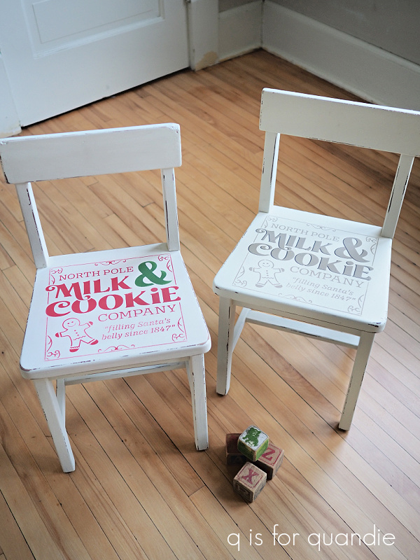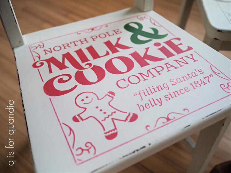 The Milk and Cookies Gingerbread Man stencil is a great choice if your project is more square rather than rectangular. It was adorable on this pair of kid sized chairs.