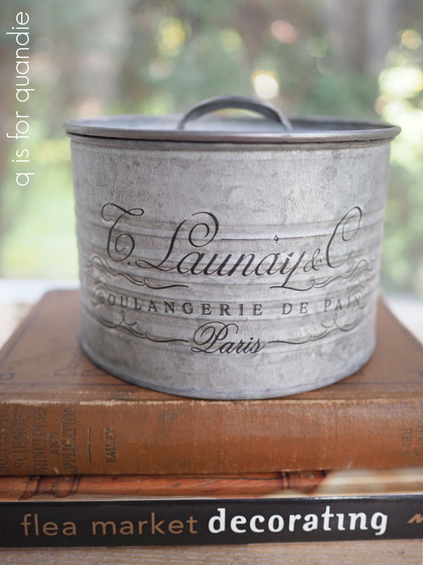 There wasn’t really much in the way of vintage items though, and I didn’t really need a giraffe figurine. Still, I did grab a couple of fun items including this little galvanized container with a lid.