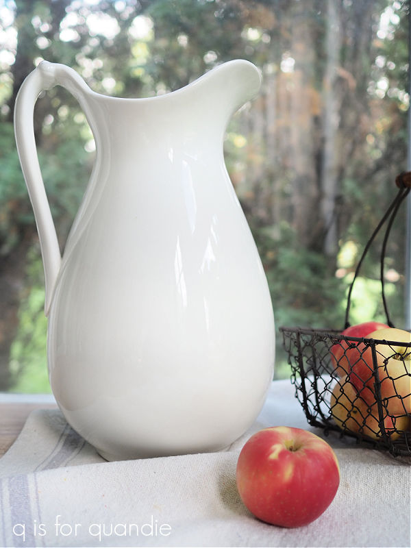 When Sue picked me up for our thrifty outing, she had a few goodies in the car for me as well including this tall ironstone pitcher …