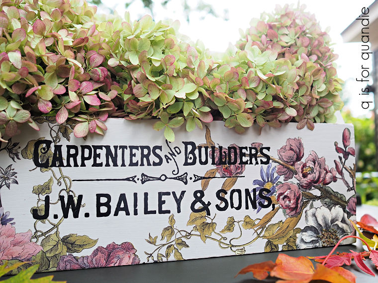 After adding a quick coat of clear wax, I filled the tote up with some of my dried hydrangeas.