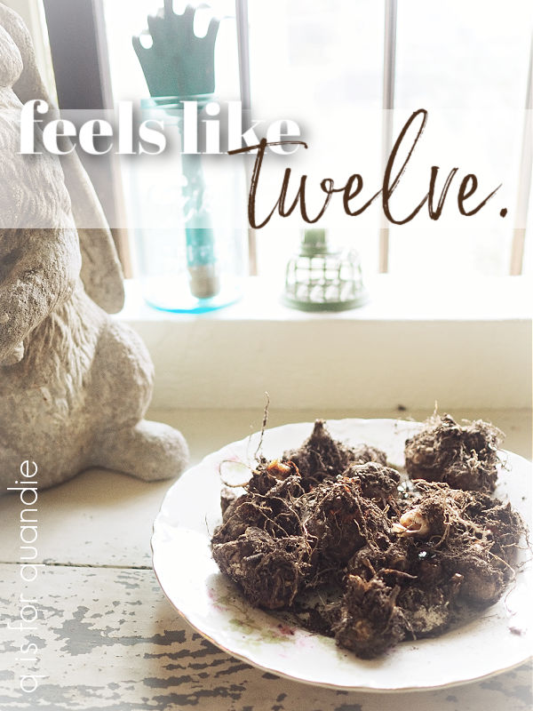 Leave the foliage in place and allow the bulbs to ‘cure’ for a week or so (sound familiar, feels like we’re painting). I just left mine in the potting shed on vintage plates to dry.