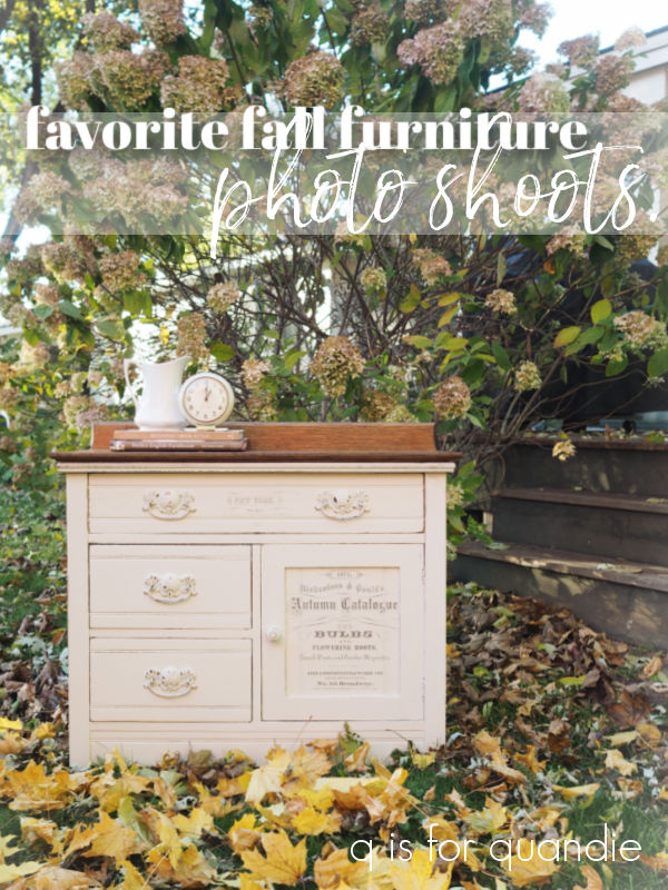 I thought it would be fun to compile some of my favorite fall furniture photo shoots for you guys today. The fall colors are so fleeting, so I usually only manage to get one or maybe two pieces of furniture completed at just the right time to take advantage of the opportunity to stage those pieces outside.
