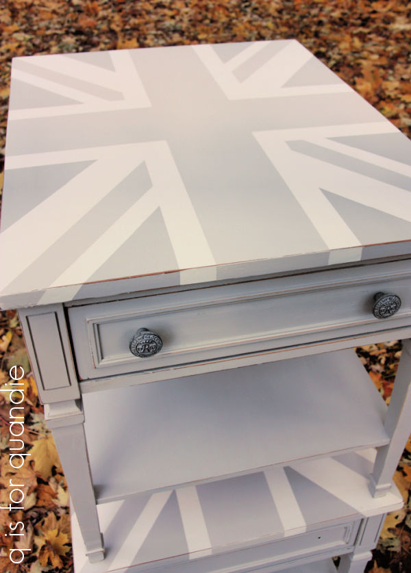 Another favorite from that same year was a pair of end tables that I painted with the union jack in shades of gray.