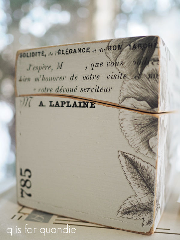 Oh, how attractive this box turned out! Whole it is such a useful size for so many things, it would be a lovely decoration even if empty. You always have such an eye for choosing and combining transfers.