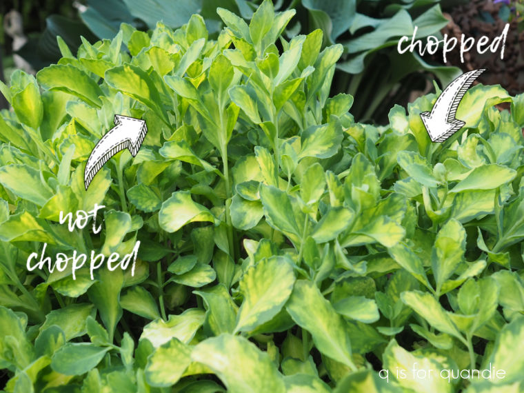 There are a few things you should know about the chop. First of all, it’s only suitable for perennials that bloom in late summer or early fall such as phlox, bee balm, cone flower, asters, veronica and of course, sedum.
