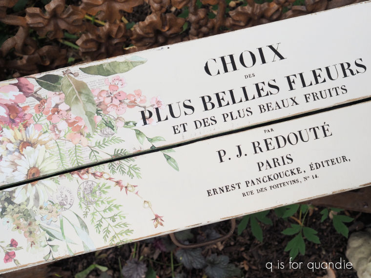 I painted the outside in two coats of Drop Cloth, and then I added the Elysium transfer.
